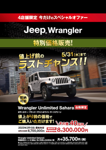 新車ラングラー今がチャンス!!&認定中古車大商談会!! |
