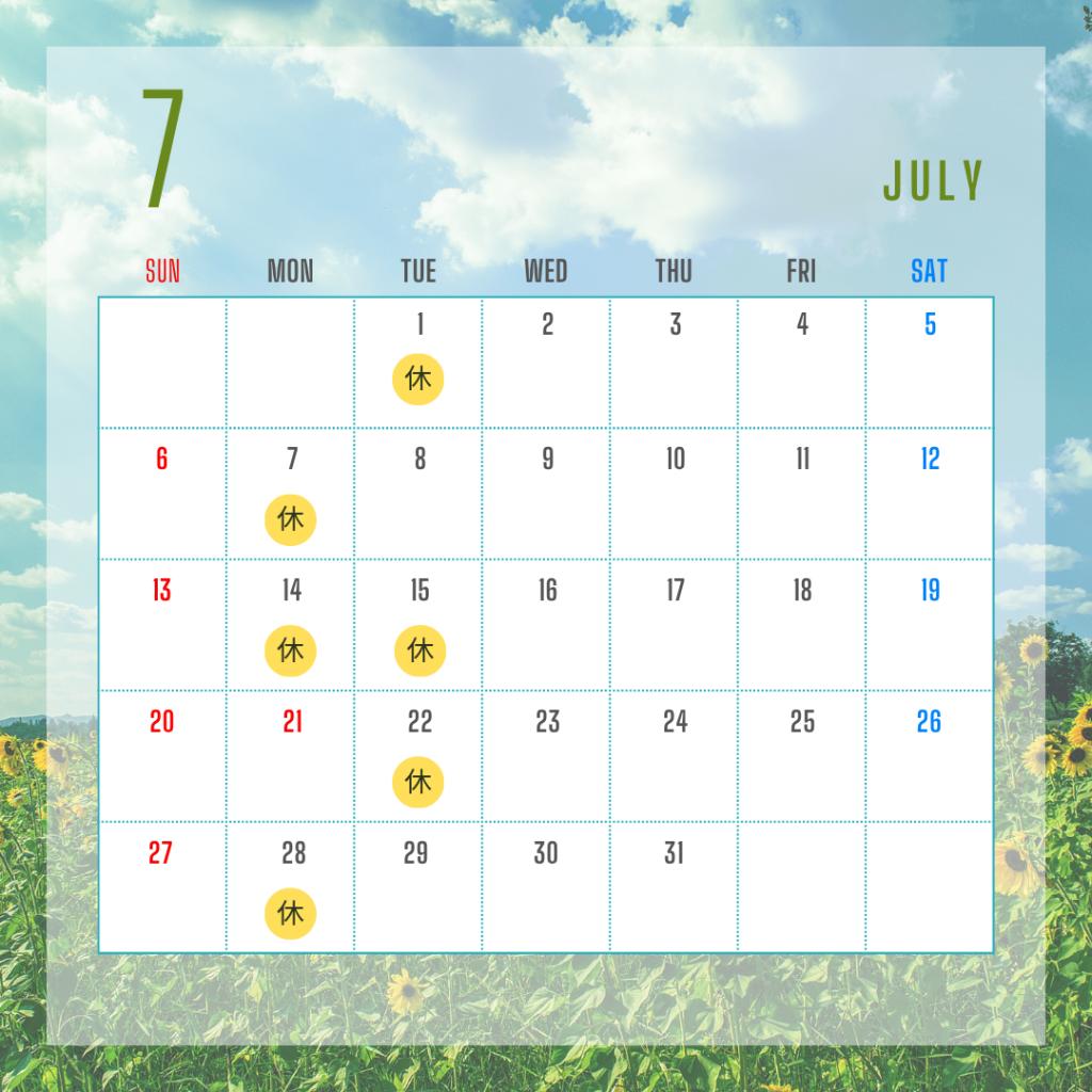 7月の定休日 |
