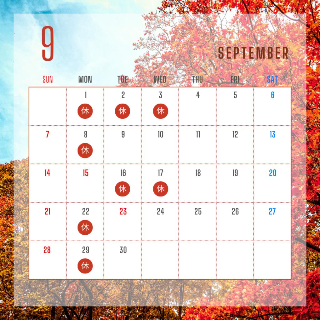 9月の定休日 |